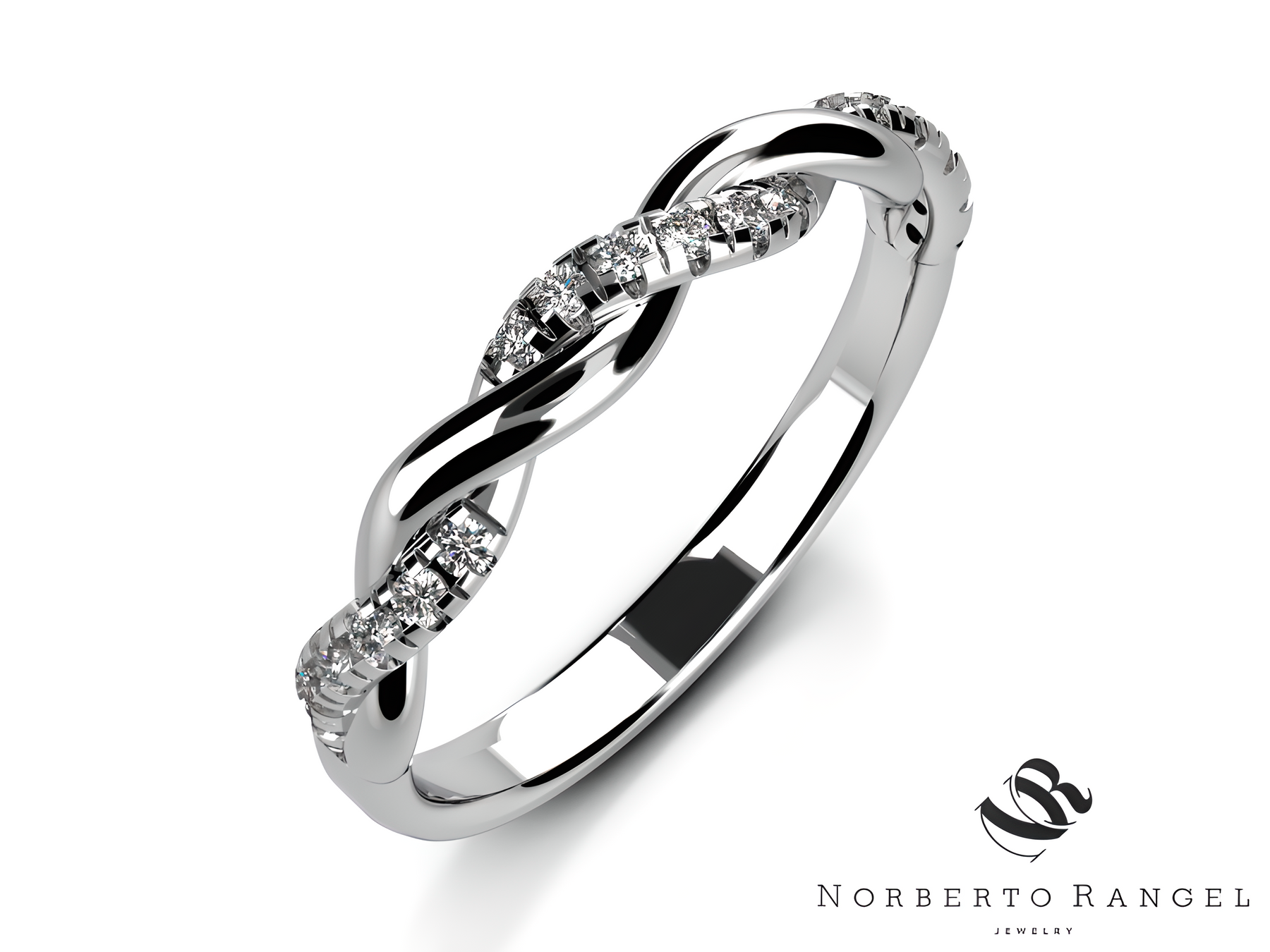 Este diseño entrelazado con detalle pavé simboliza la unión y la continuidad, ofreciendo un estilo clásico que trasciende modas pasajeras.