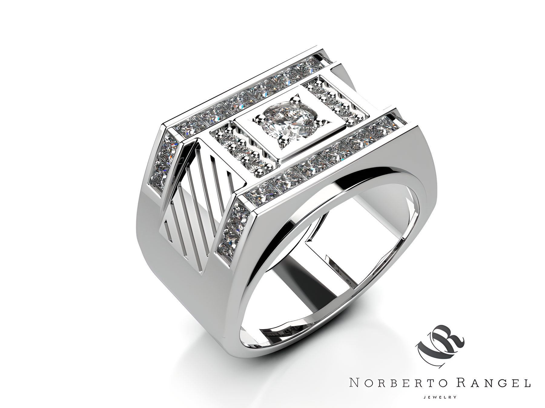 Con un diseño estructurado que combina detalles en pavé y líneas arquitectónicas, esta pieza irradia una presencia imponente y contemporánea.